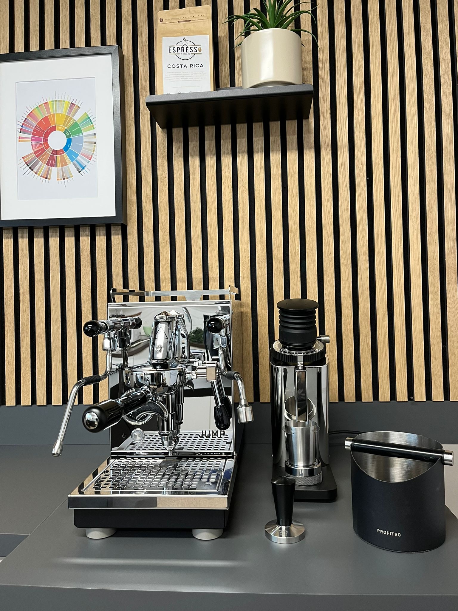 Speciale uitgave van de Profitec JUMP, met Profitec TWIST Single Dose molen en uitklopbak!